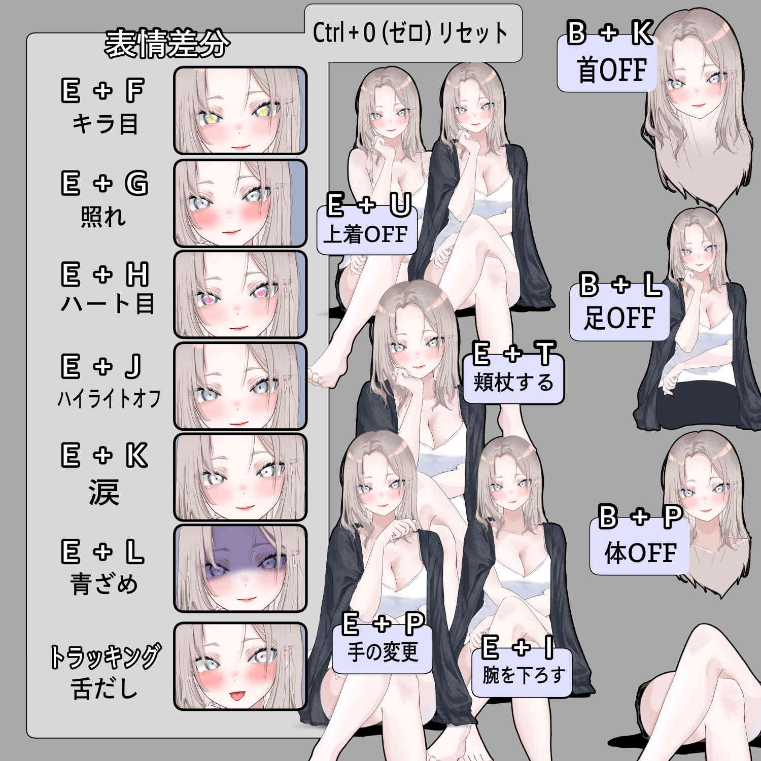 体OFF,足OFFなども入れています。衣装を変えたい場合はこちらを使ってもらうと便利かと思います。